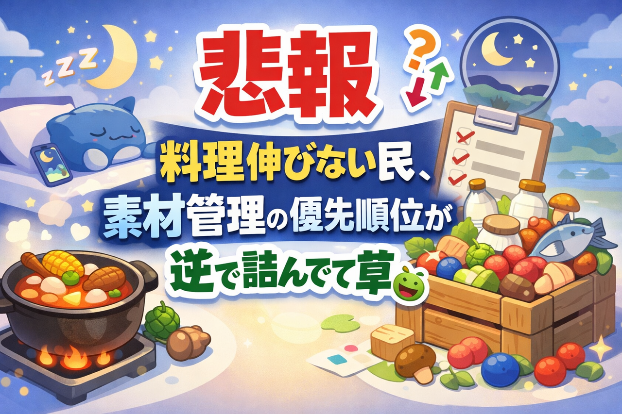 【悲報】料理伸びない民、素材管理の優先順位が逆で詰んでて草